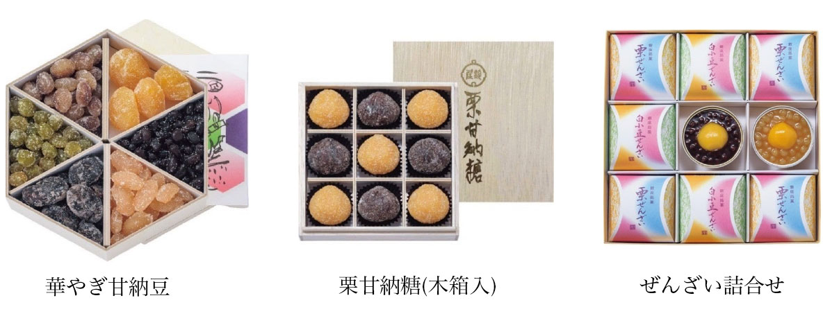 それに伴い、10月1日発刊予定のシャディ歳暮プレミアムギフトカタログにて「銀座鈴屋 華やぎ甘納豆」「銀座鈴屋 栗甘納糖(木箱入)」「銀座鈴屋 ぜんざい詰合せ」を掲載いたします。
